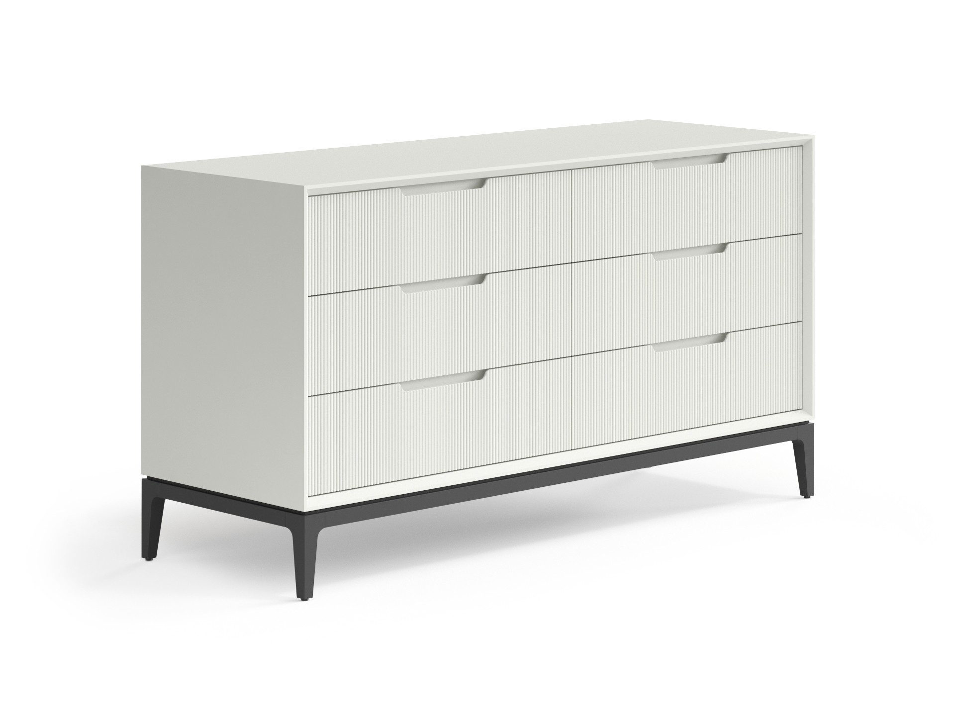 Изделие лаконичной формы внесёт в пространство спокойствие и надёжность, а рельефная фрезеровка на фасаде добавит индивидуальность. Благодаря скрытым направляющим выдвижных ящиков вид изделия остаётся безупречным всё время пользования. Количество циклов открывания и закрывания — 80 000. Это значит, что если вы будете пользоваться комодом дважды в день, изделие будет оставаться в идеальном рабочем состоянии и радовать вас примерно 55 лет.