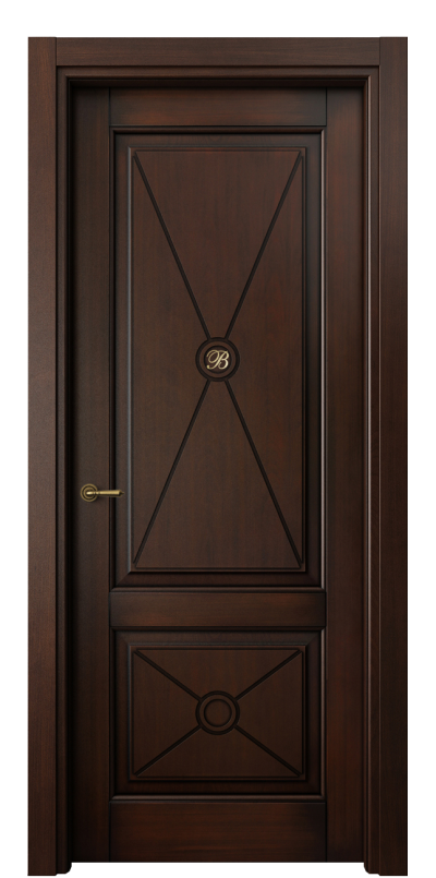 Оригинальным решением в этой коллекции является возможность создания монограммы. Она выполняется в технике инкрустация и подчеркивает очарование образа двери. Базовый вариант — монограмма с буквой В, которая символизирует название компании Волховец. Также мы можем создать индивидуальную монограмму с вашими инициалами. Такое решение может стать прекрасным началом семейной традиции.